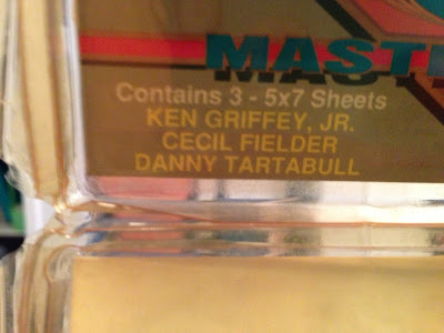 Dammit. So the one that matters is stuck between the Seinfeld guy and Prince Fielder's dad. Great. Just great. I was seconds away from cracking open the sealed package. Luckily I was able to keep my (hoarder) composure when I found that clean image of the Griffey card online, and relief washed over me in an awesome wave....