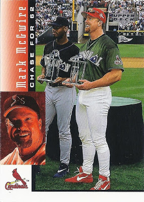 In 1998 McGwire got his own set of cards called "Chase for 62." Pictured here are both top vote-getters for the 1998 All-Star game. Can you guess which one is going to be inducted to the Hall of Fame first?