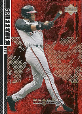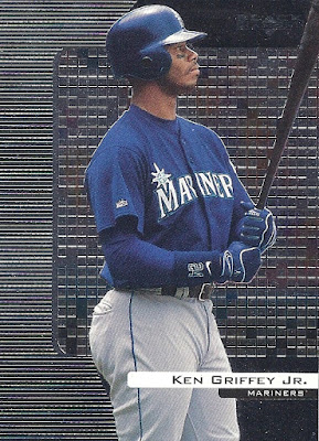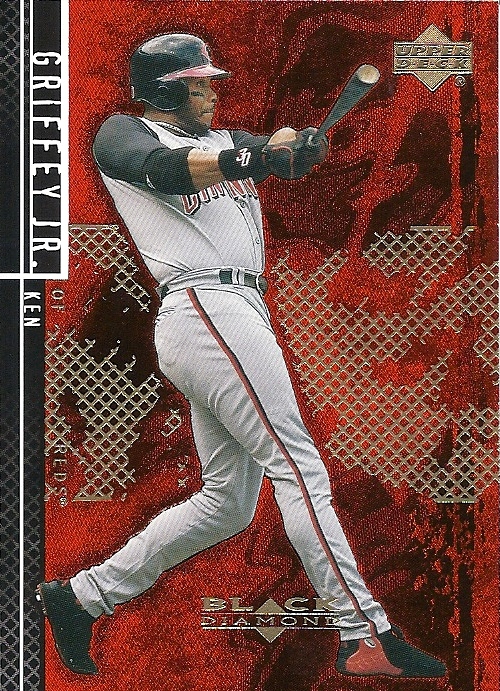 From what I remember seeing, and this may or may not still be the case as I bought these a very long time ago, the prices seem to be slightly lower for Junior’s Tiffany All-Star card than his base card simply for the fact that it’s a subset. This is very silly as 1) the All-Star card is the better-looking of the two and 2) there are the exact same quantity of each in the world. If anything I would be willing to pay more for the All-Star card because I like it better. Then again there is a propensity among card collectors in general to prefer base cards, but as they are equally scarce I don’t see the reason for the price difference. Maybe it’s because I’m a player collector and I need them both anyway.