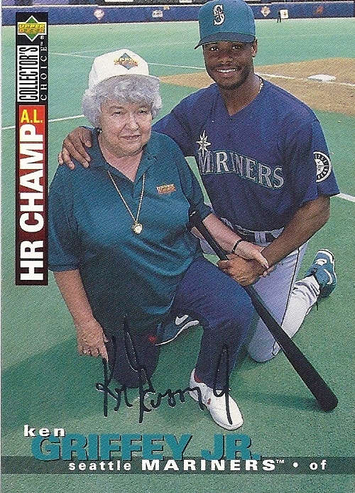 other peoples' pictures. Or perhaps she's the same rep that's been taking all his Upper Deck photos since the famous '89 rookie and they now have a work-based friendship he wanted to commemorate. I really have no idea, but Griffey is