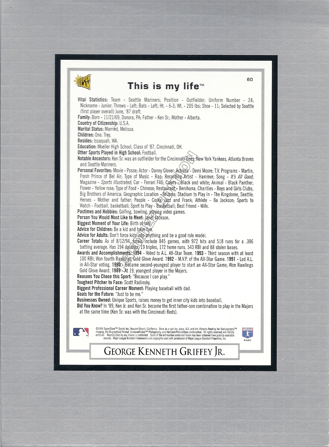 Oh, man. Remember Posse? And how about toughest pitcher to face: Scott Radinsky? We'll have to spend more time on this 5" x 7" beast in my eventual GOUS post wherein I'll cover all my Griffeys of Unusual Size.
