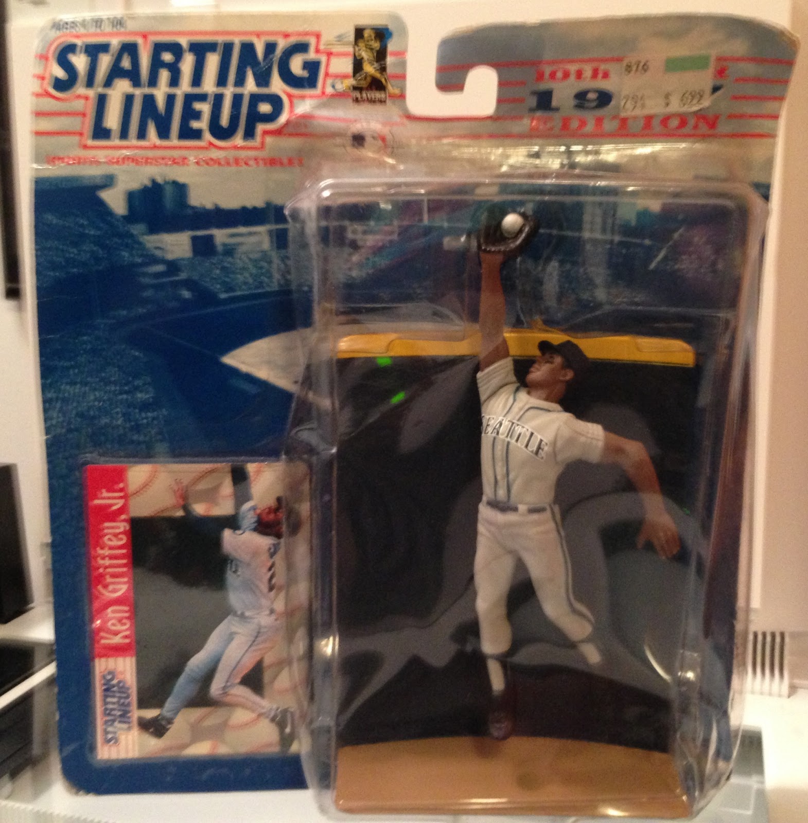 | I love these old Starting Lineup figures. This one is unique as it has a wall - Griffey is robbing somebody of a homerun. I hope it's Barry Bonds. |