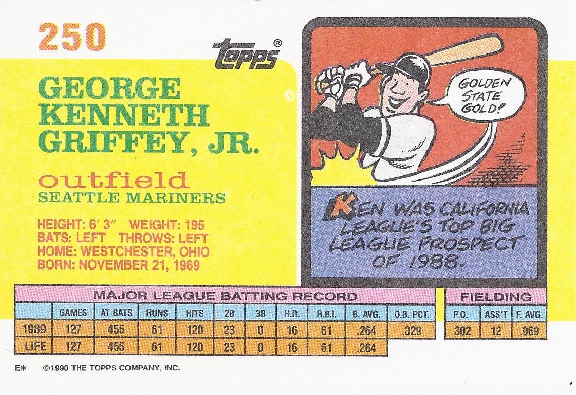 With all that great space, I would like to have seen more stats or a nice, big blurb full of cool information. Topps decided to go with a cartoon, which is cool. I'd prefer it showed Griffey instead of some white guy, but whatevs.