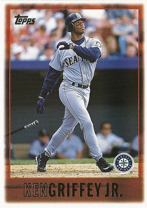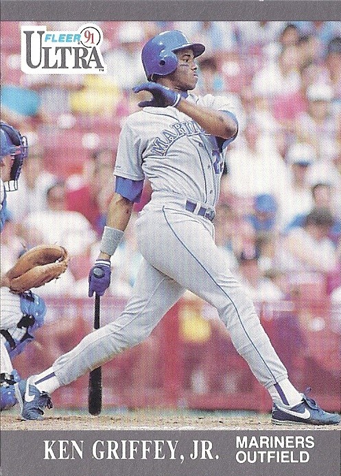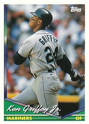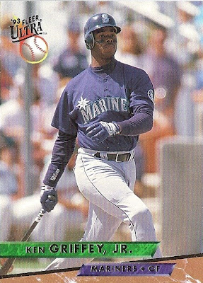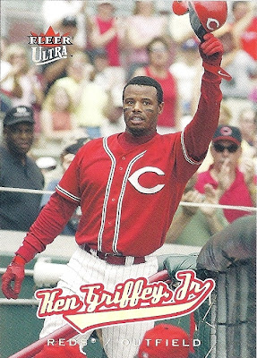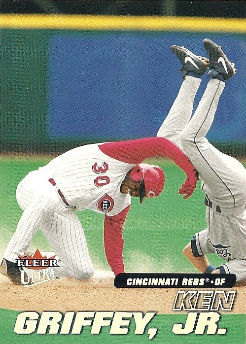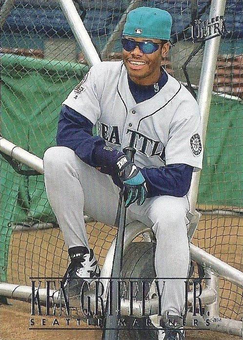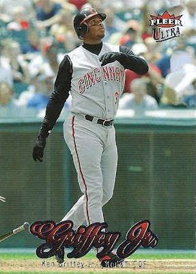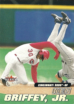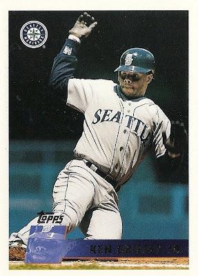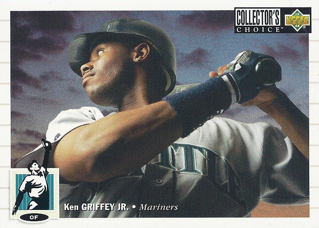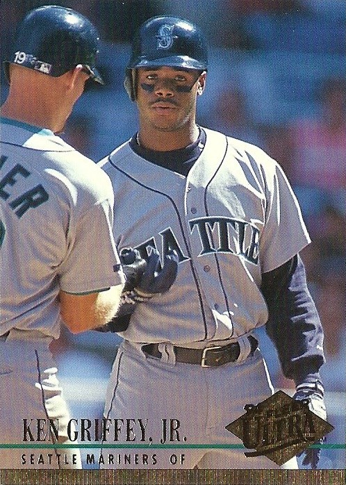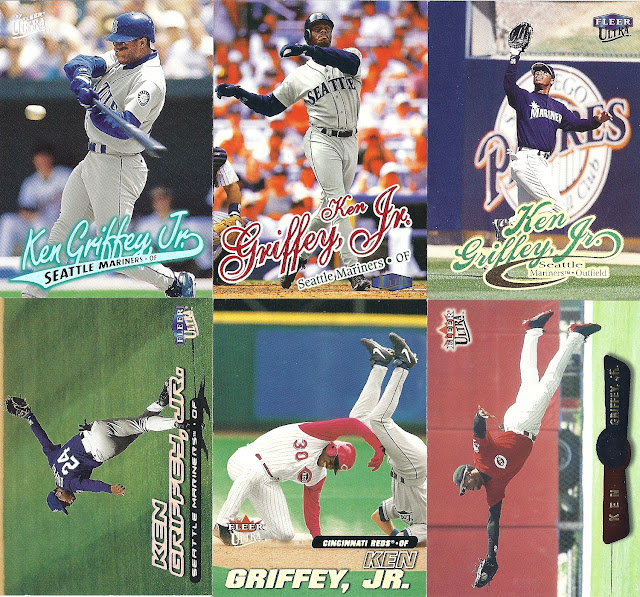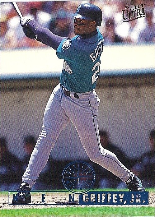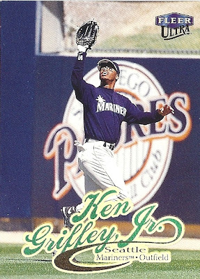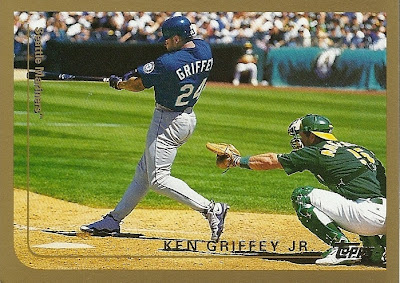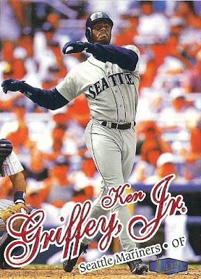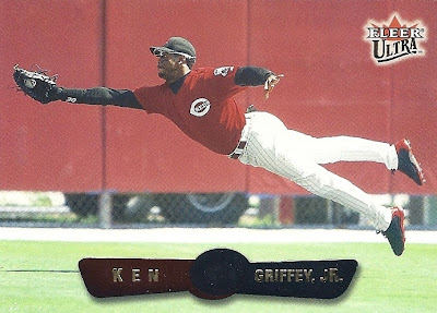 All the previous Griffey base cards from this group had great pictures full of uniqueness and fun little winks to the collector, but this is just a cool action photo. No compaints, I guess, but while still completely awesome this is the least awesome picture in the timeline. And that's where it ends....