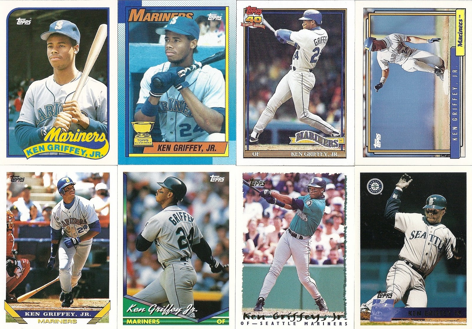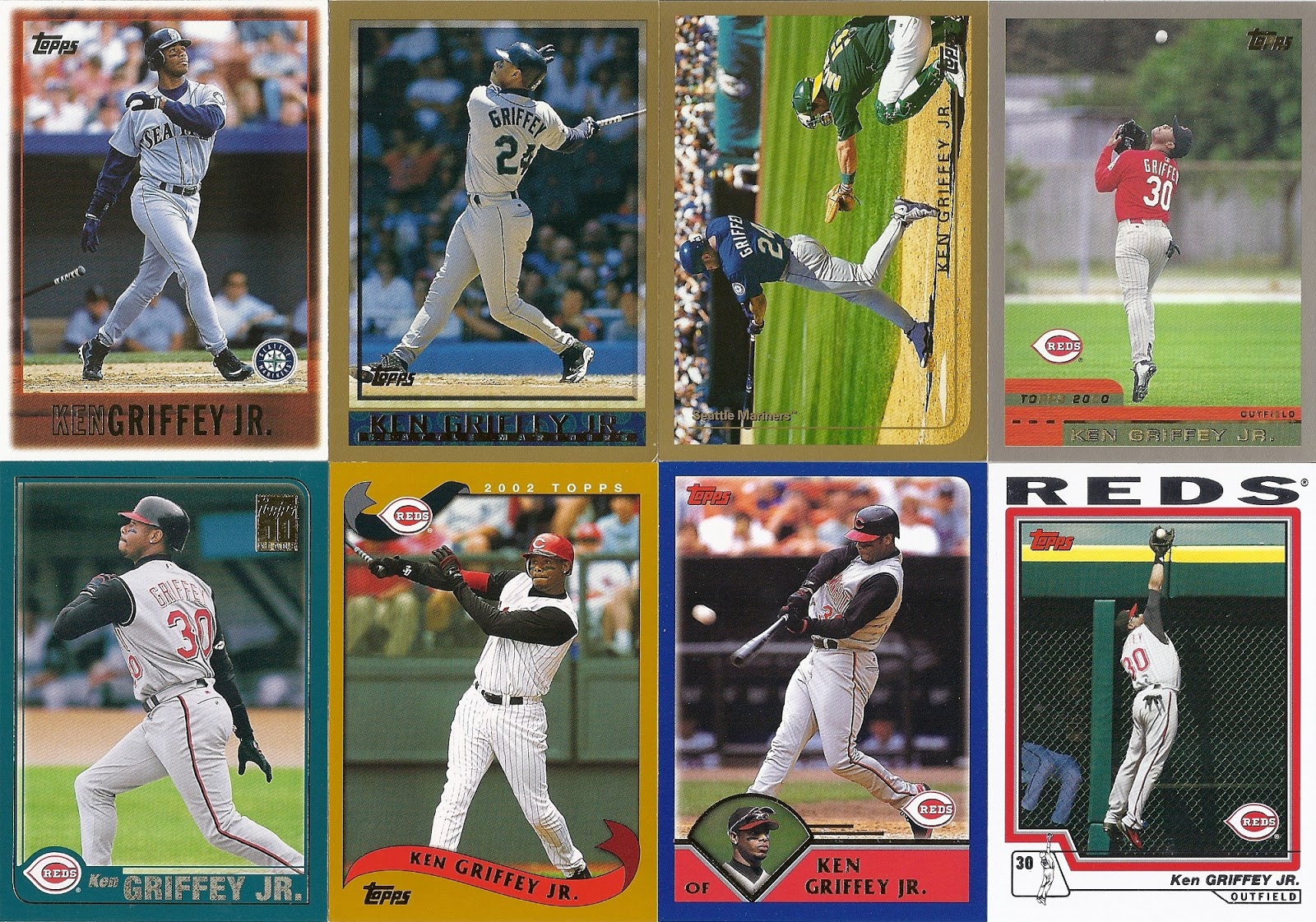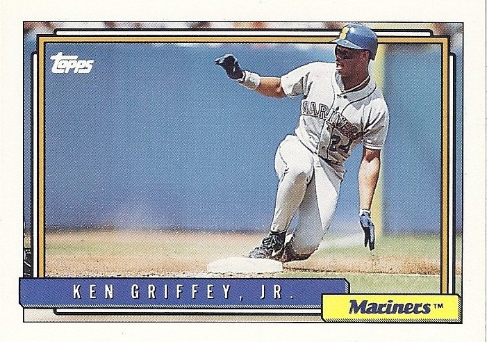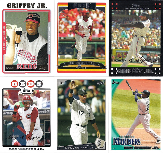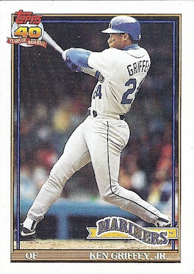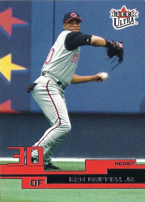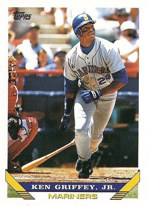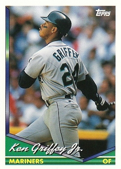 All the previous Griffey base cards from this group had great pictures full of uniqueness and fun little winks to the collector, but this is just a cool action photo. No compaints, I guess, but while still completely awesome this is the least awesome picture in the timeline. And that's where it ends....
