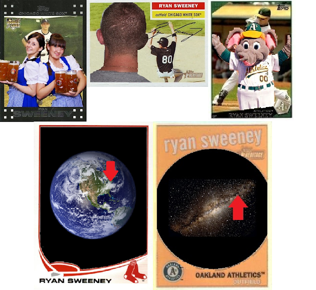 The proofreaders nowadays are a lot more selective, so such low-brow card humor is difficult to come across. That Ryan Sweeney card is one of the few to come out of recent years. I would like to see companies embrace the low-brow and release them as SP's or in a subset, so I've taken the liberty of redesigning the subject card myself. Here it is, and if you ask me it's a heck of a lot more appropriate than the original: