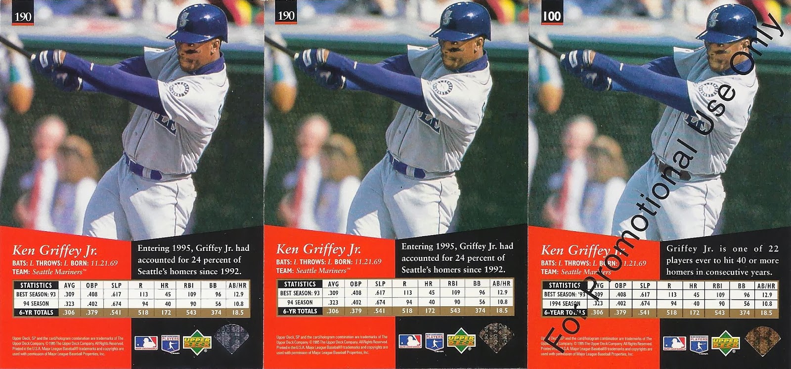 There is also a Promo Griffey that was made for this set. Here is the back. Notice that it, too, is #100: