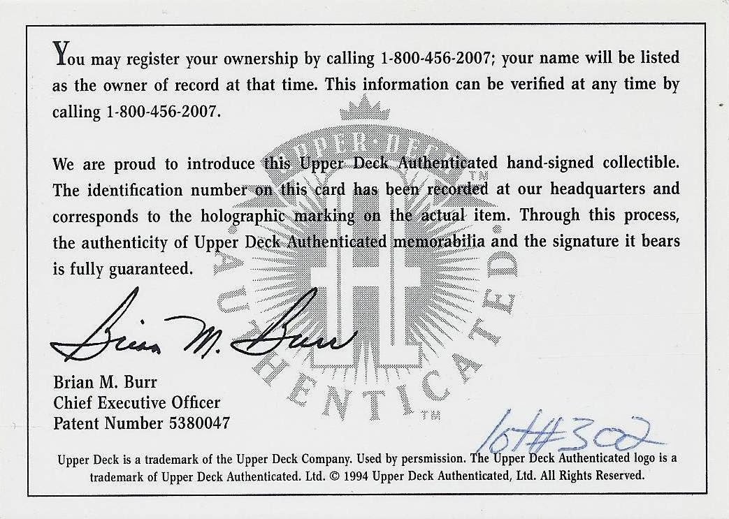 ReplyDeleteI Have the 1995 UD SP #100 gold auto numbered 496 of 1000. What's the story behind this card?