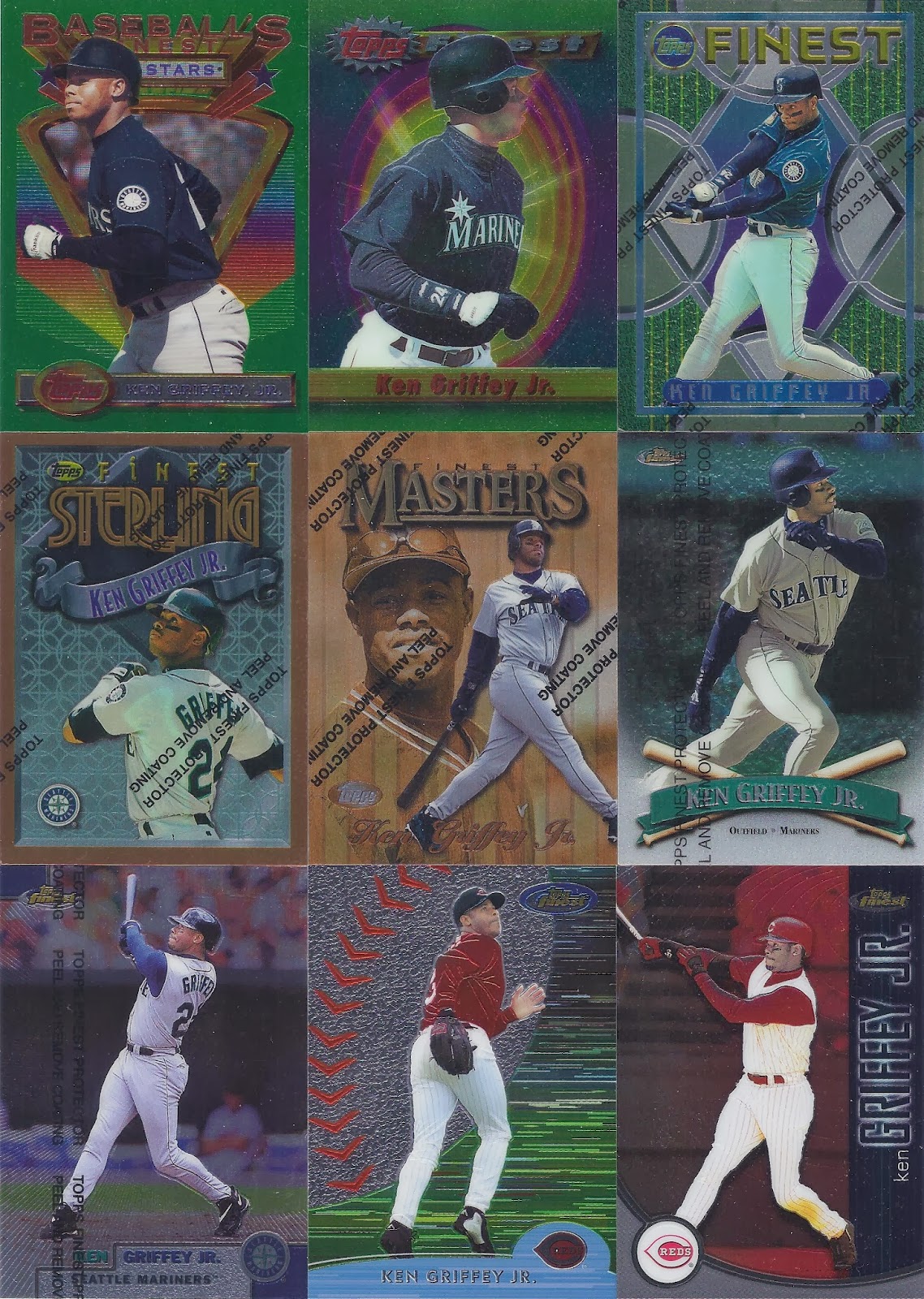 Here, in order, is every Topps Finest base card design that ever featured Griffey: