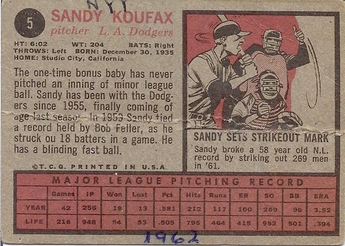 I was just messing with you earlier. Here's a good look at the back of that Koufax from the first page: