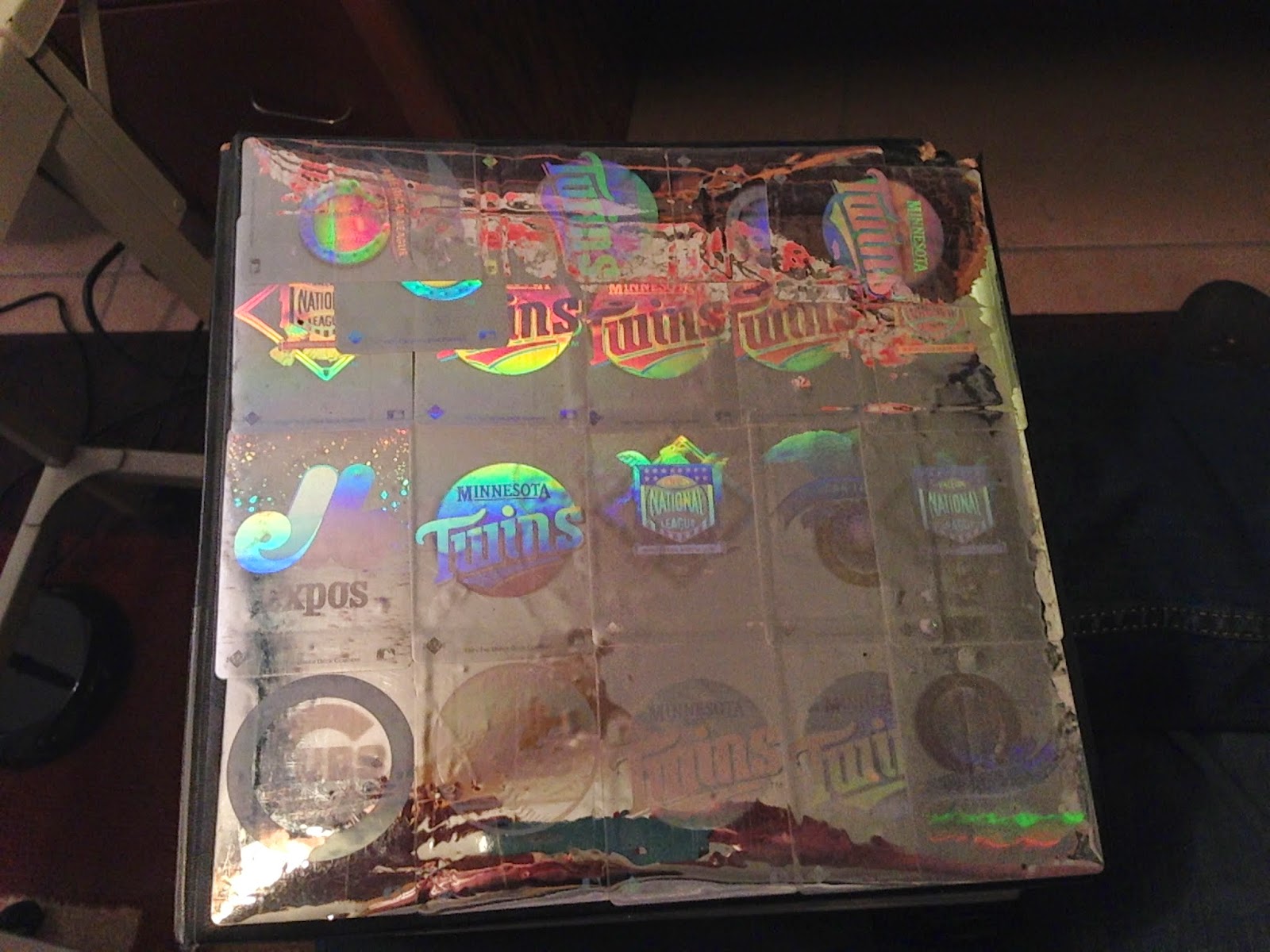 As you can see he wallpapered every binder with UD hologram stickers. I told him he must have busted a lot of packs of 1990 Upper Deck because they had the big square stickers while 1989...."had circles," he completed my sentence. At that moment I realized that this guy I'd known for so long had been a real collector at some point, and our potential for rambling, drunken conversations exclusive to everybody but us just exploded.
