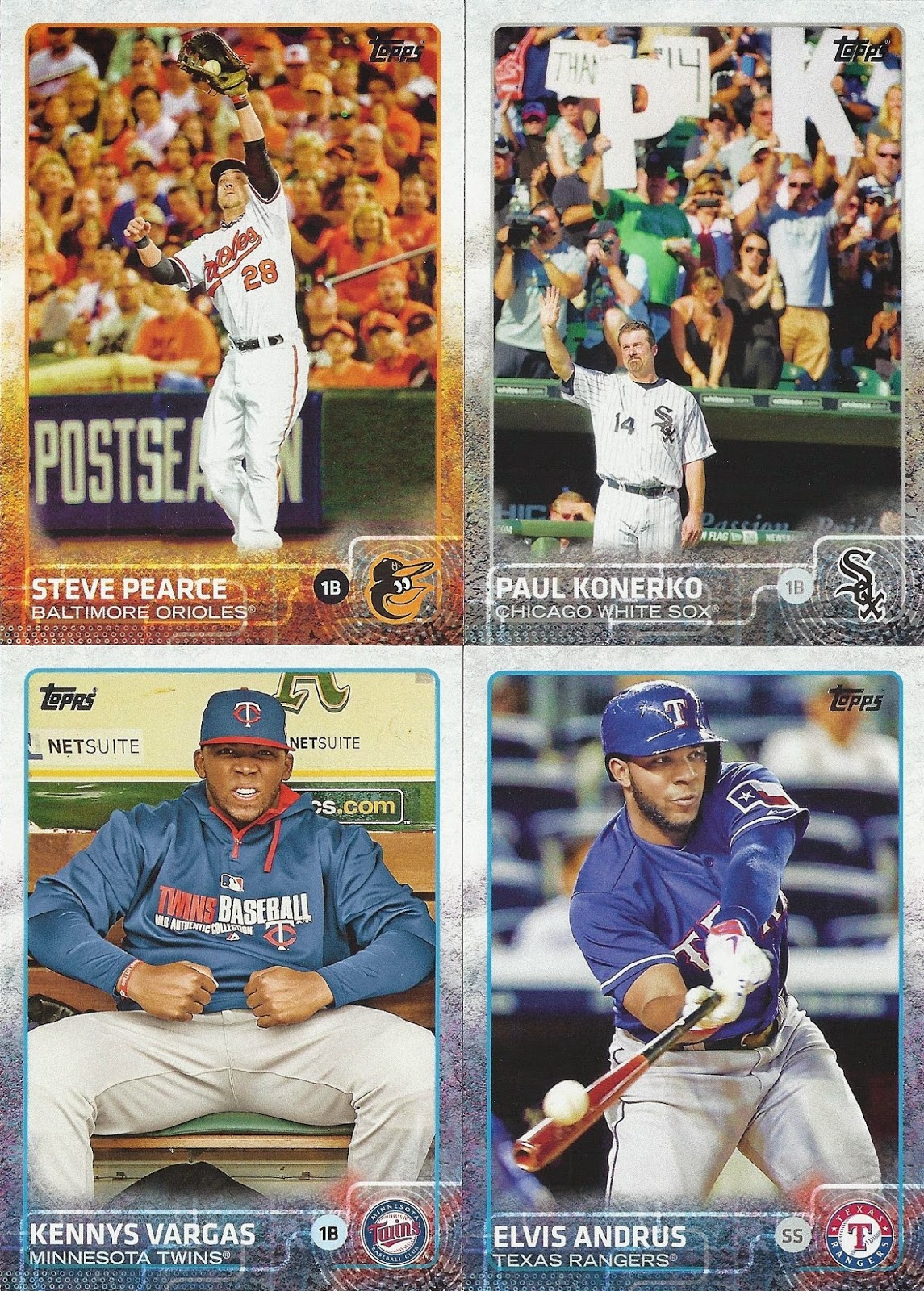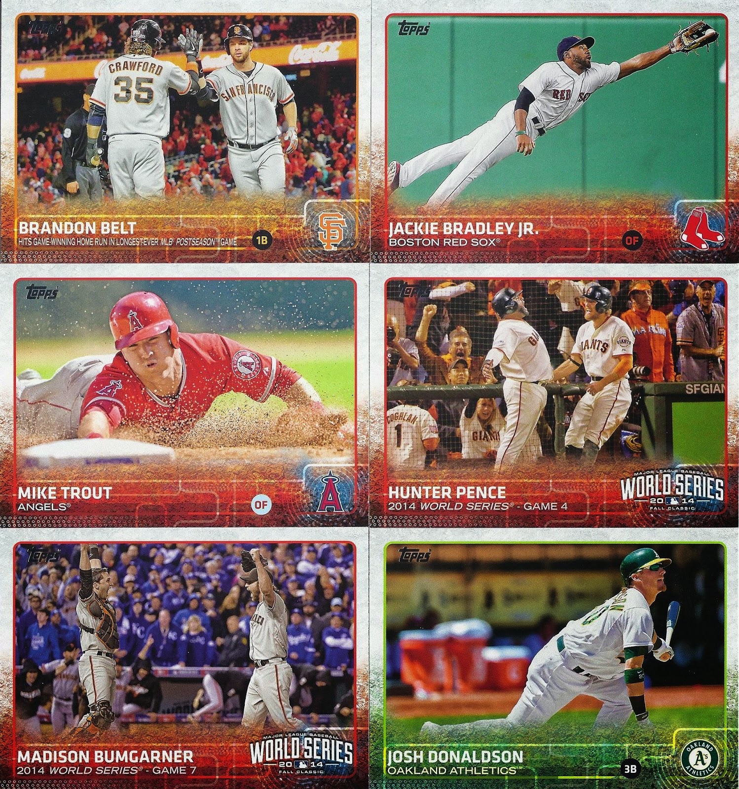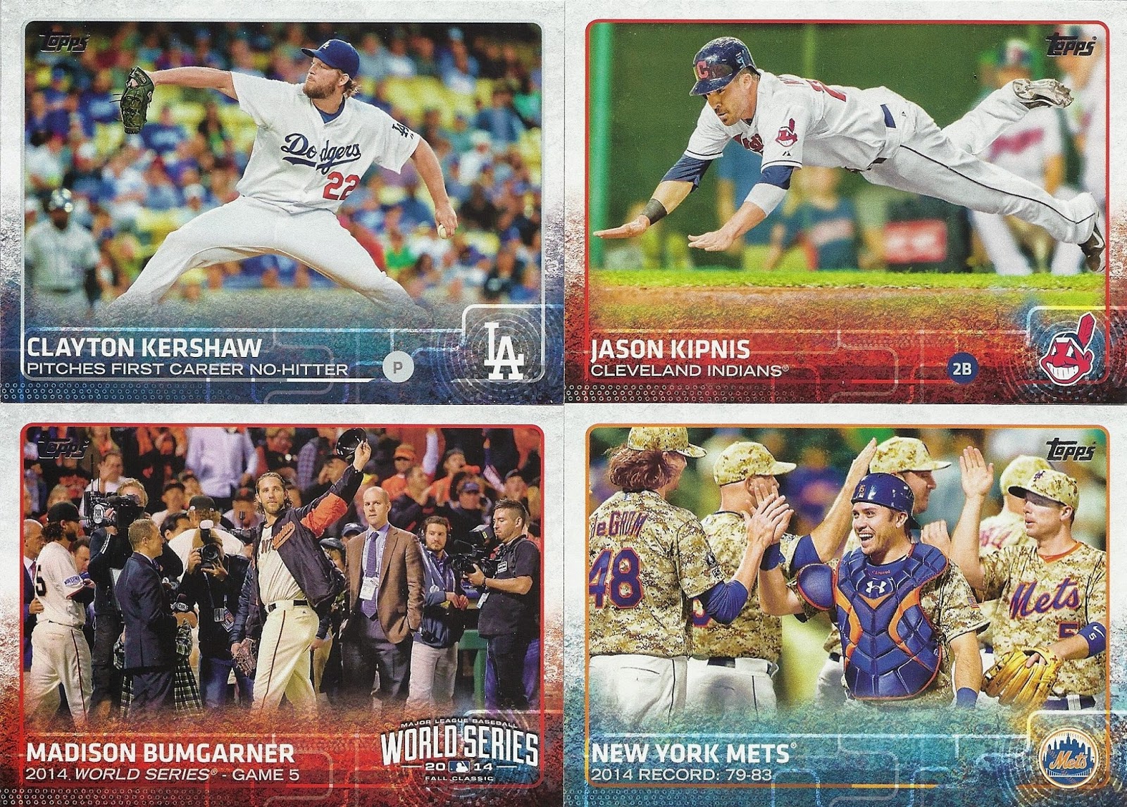 I got two boxes of 2015 Topps, one jumbo and one hobby, with the express goal of finding out which is a better box for my busy collecting lifestyle. Both boxes had their pluses and minuses (lots of pluses, actually, but one BIG minus). Let’s take these one-by-one: