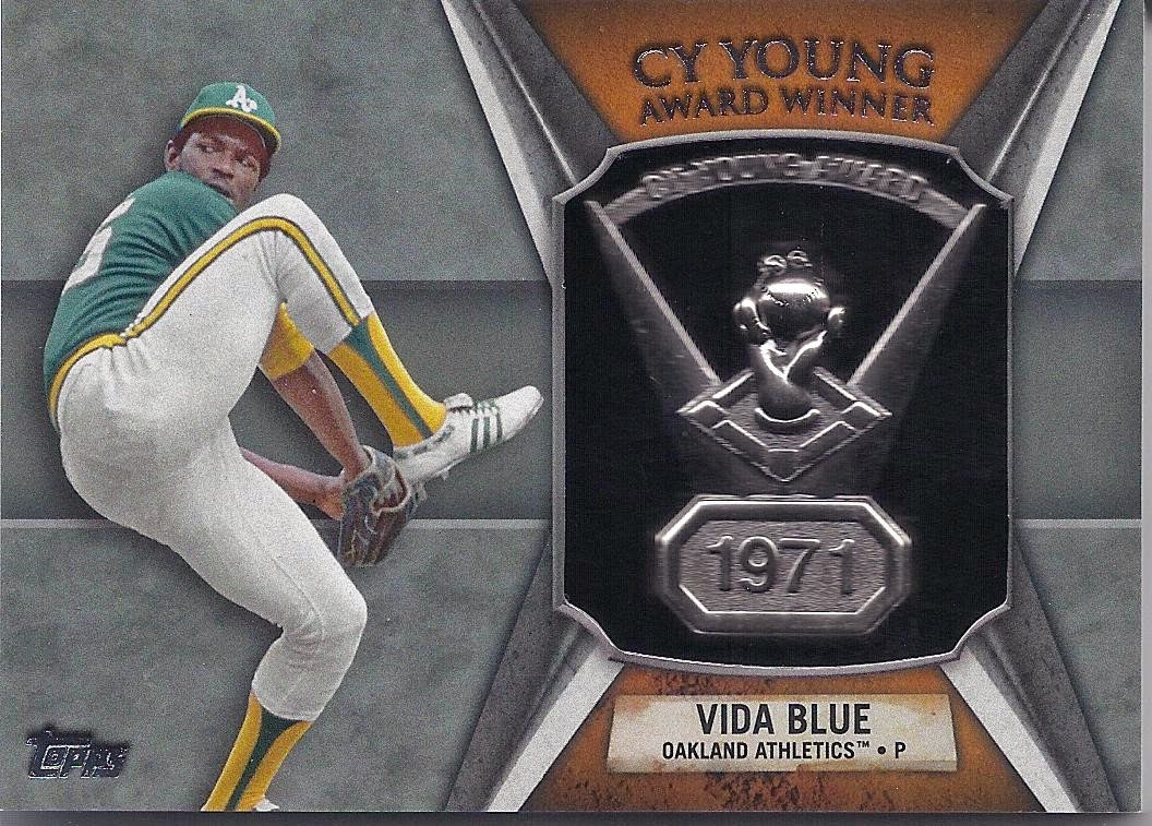 In the box with that ball was a card case which, when I slid it open, revealed that it only held one card: this ultra-thick manu-relic of Louisiana boy and PC, Vida Blue. That picture has been used before, but what a picture it is. No harm, no foul. I'm in lurve with this one.