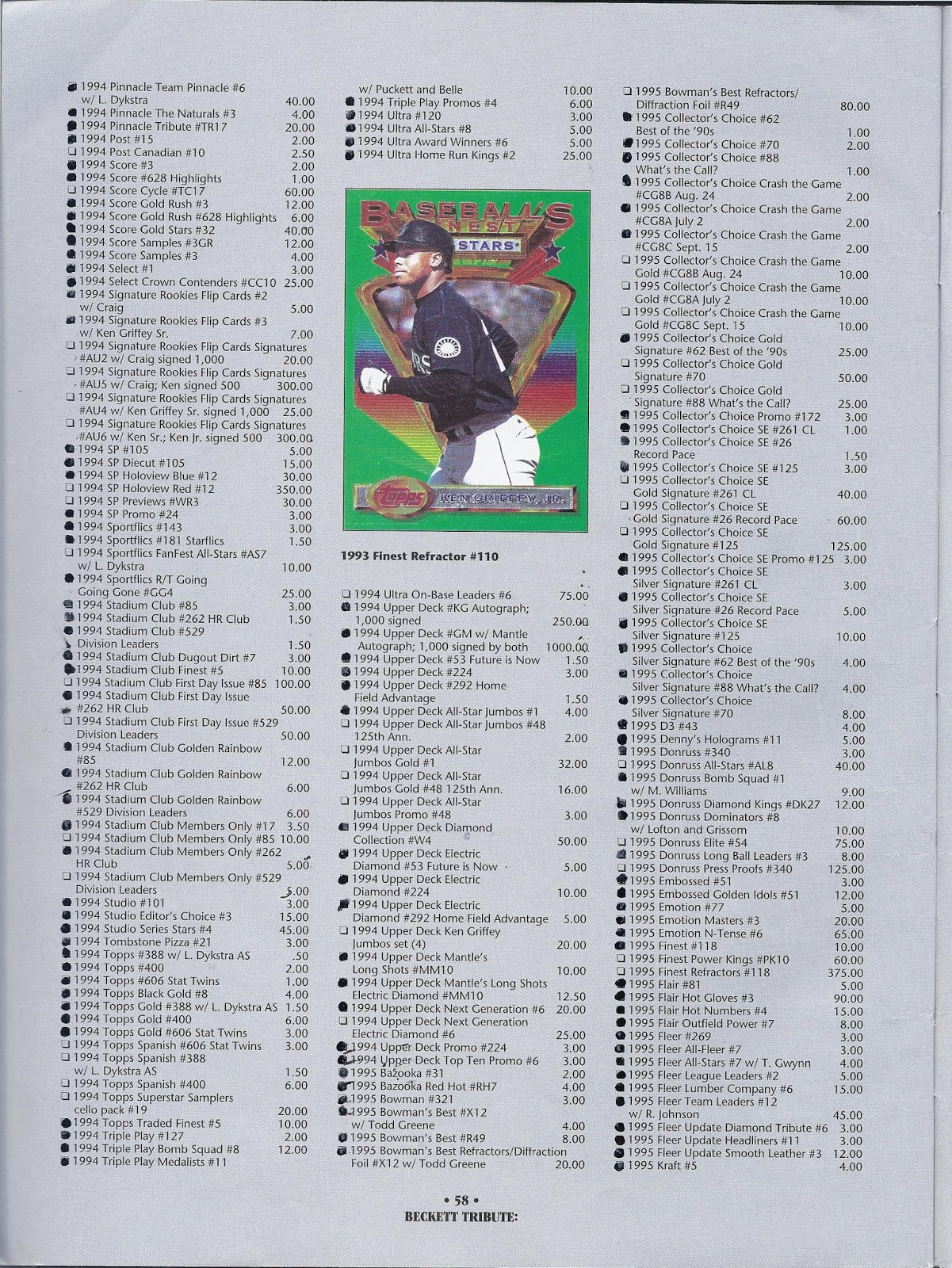 Of course any help would be greatly appreciated and reciprocated. Again, for an updated version of this list, please see the “1996 Beckett Tribute Checklist” posted under my Offical Griffey Wantlist at the top of the blog.