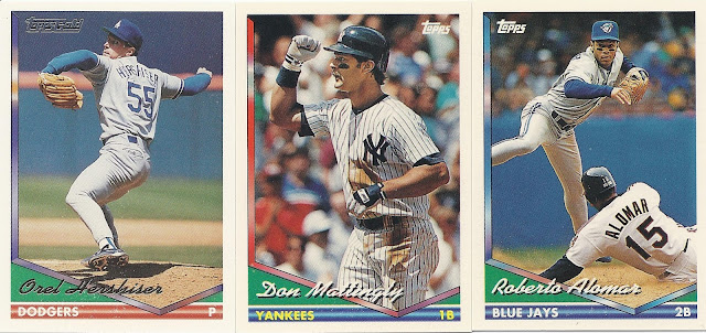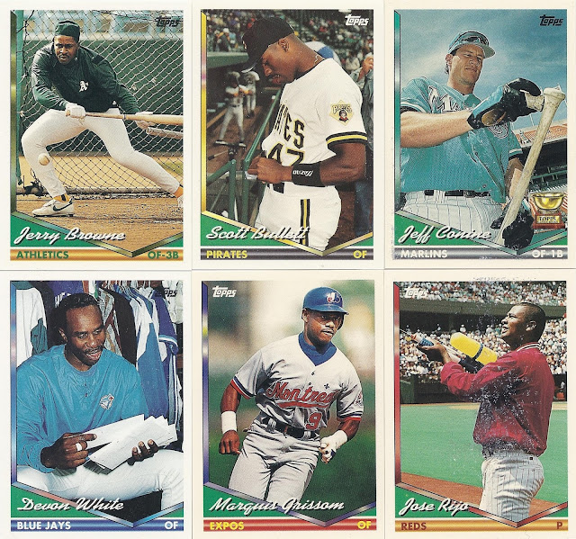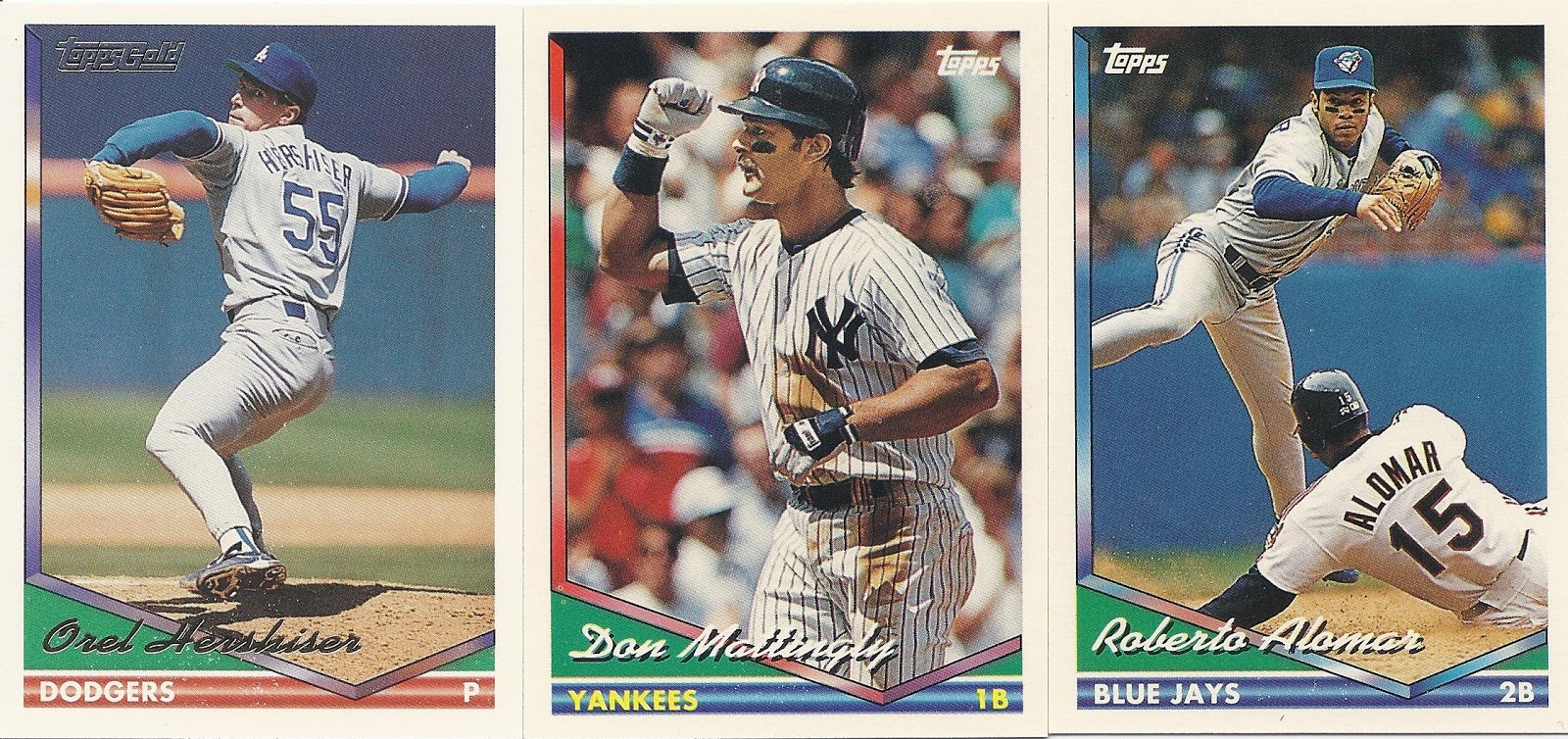 I’ve always thought of the next two designs in the timeline as twins. They look nothing alike, but they both make liberal use of a substantial, heavily-imprinted foil logo element on their base cards and inserts. The massive logo elements are deeply-embedded in the card surface of both sets, and they give a unique, three-dimensional quality to what has been a two-dimensional product for over a century.