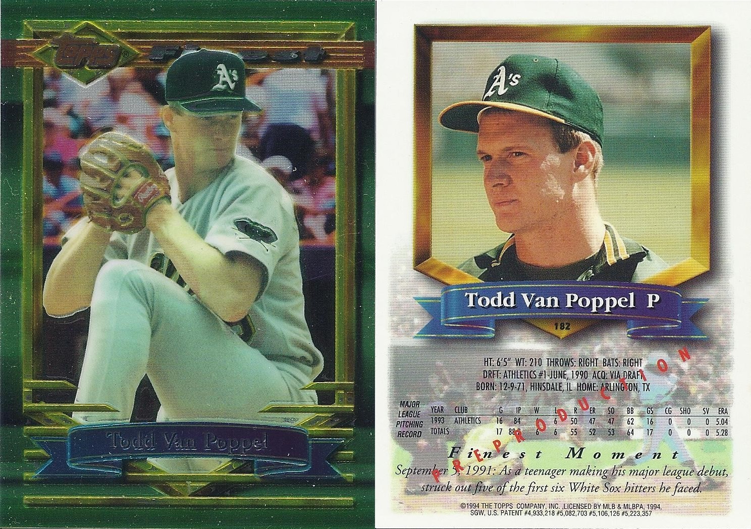 The overall design of this other “deep foil” twin is simpler, but the embedded foil element has also become more refined. This year we get a complicated shape, realtexture, and smoother raised elements within the foil logo. They even went so far as to include a little batter silhouette (even for pitchers) beside the SPx logo and a little baseball centered beneath. The deeply-embedded, raised foil logo is fun to run your fingers over, but the rest of the card falls flat design-wise. Where the ’98 design was organic and attractive, the ’99 design is kind of boring apart from the embedded foil bit. Despite this, the inserts are cool and the base parallel is a knockout.