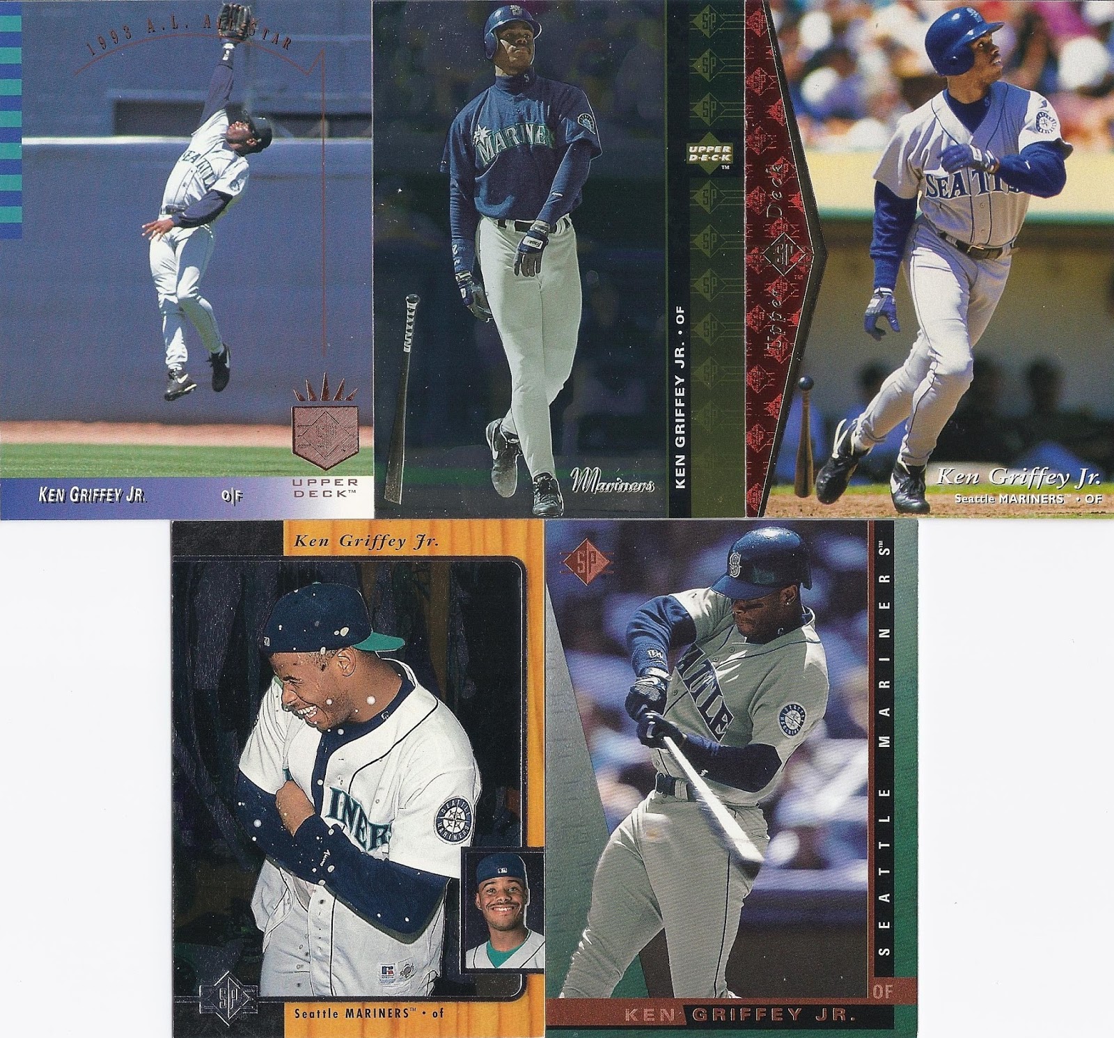 Here’s one more look at Griffey on every SPx base card design in order: