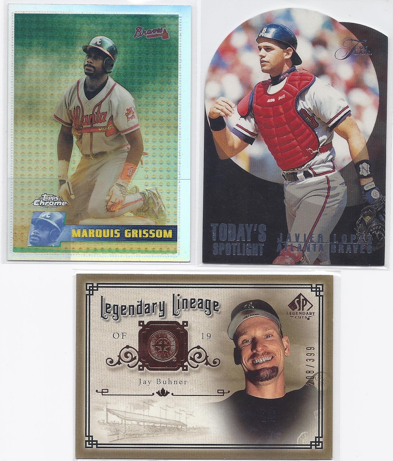 That Javy is a great example of early die-cutting and from fancy-pants Flair, no less. I've never owned one of these. And below that is a great-looking, numbered beast of Jay Buhner being his congenial self. I need to go bar-hopping with that guy before I die. When I do, I'll bring this card and a sharpie. The space below his name is begging for some ink.