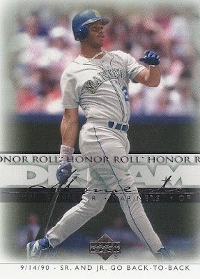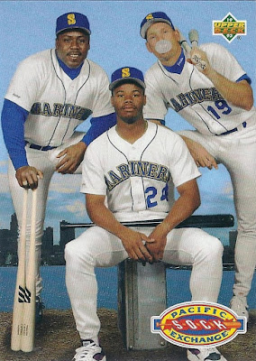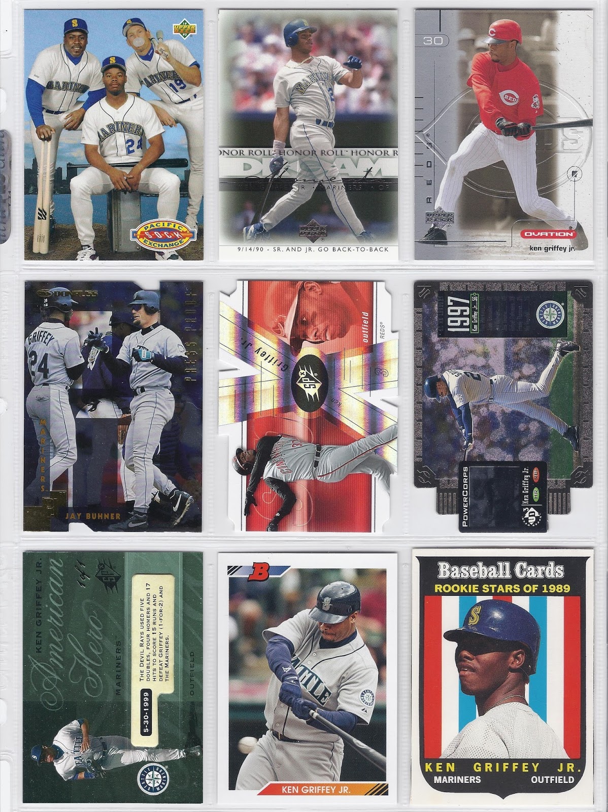 If you're not familiar with the idea of a Frankenset, it is a customized set of cards properly sequenced by card number that all tie into a connecting theme. Some Frankenset themes include whole teams, mini-collections, and even just generally great cards or photos. This is the first Frankenset I'm aware of that is made up of just one player: Ken Griffey, Jr., the man of a million cards. I took the liberty of including things like inserts, parallels, cameos, and oddballs for the sake of variety and because it's just more fun that way. Enjoy!