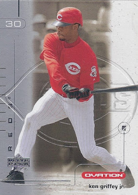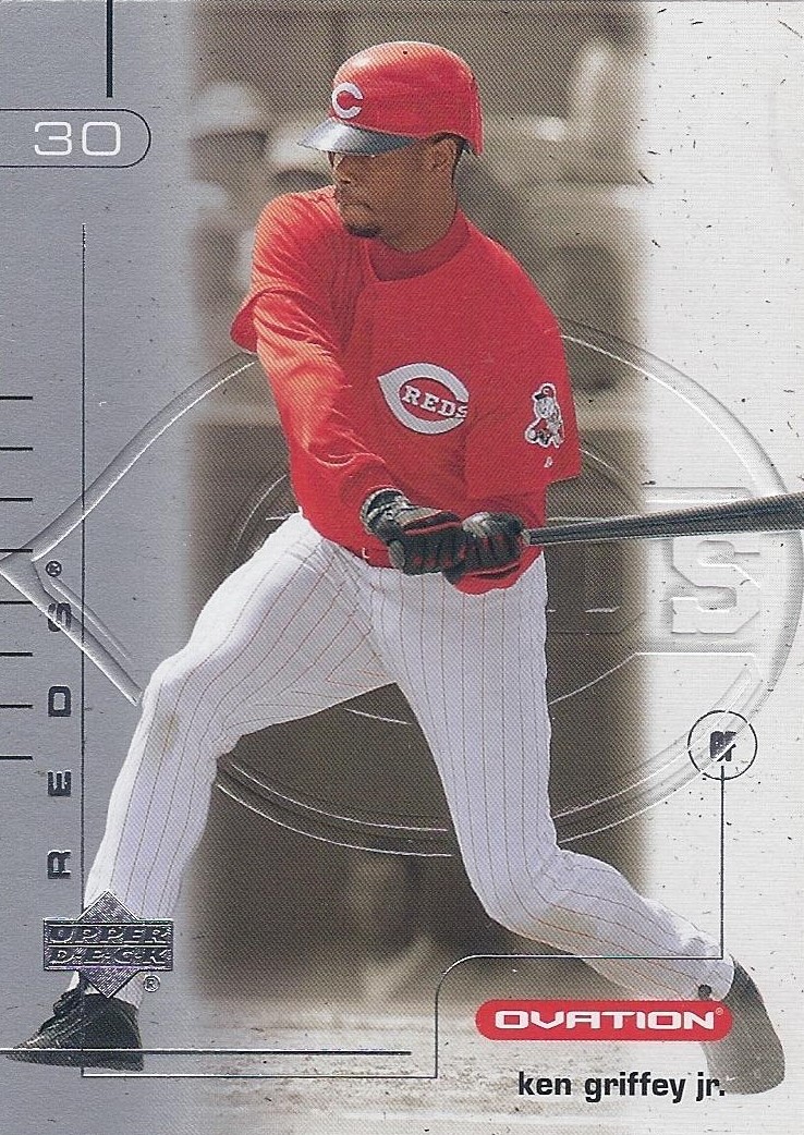 This year of Ovation was all about embossed cards draped in greenish-blue for all players and all teams. It was a color combo that suited Mariners a lot better. When you add in the subset that featured even more Junior Cincy cards, that made for several greenish-blue cards featuring Junior in a Reds uniform. This silver parallel is a nice respite from the weird color combos that dominate this base set.