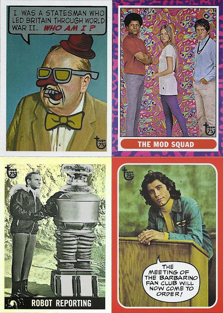 I found a new card brand, too: Topps 75th Anniversary. It's a non-sports product; but it advertised three autographs per box, so I took a chance on a pack.